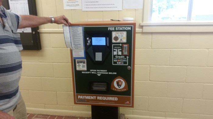 I’ve never experienced paying a machine for our stay before now and this one was fairly painless. The park attendants took us around in a golf cart to choose the site we wanted that would hold Dora since she’s pretty big. We found one and came back to the office to pay the machine!!