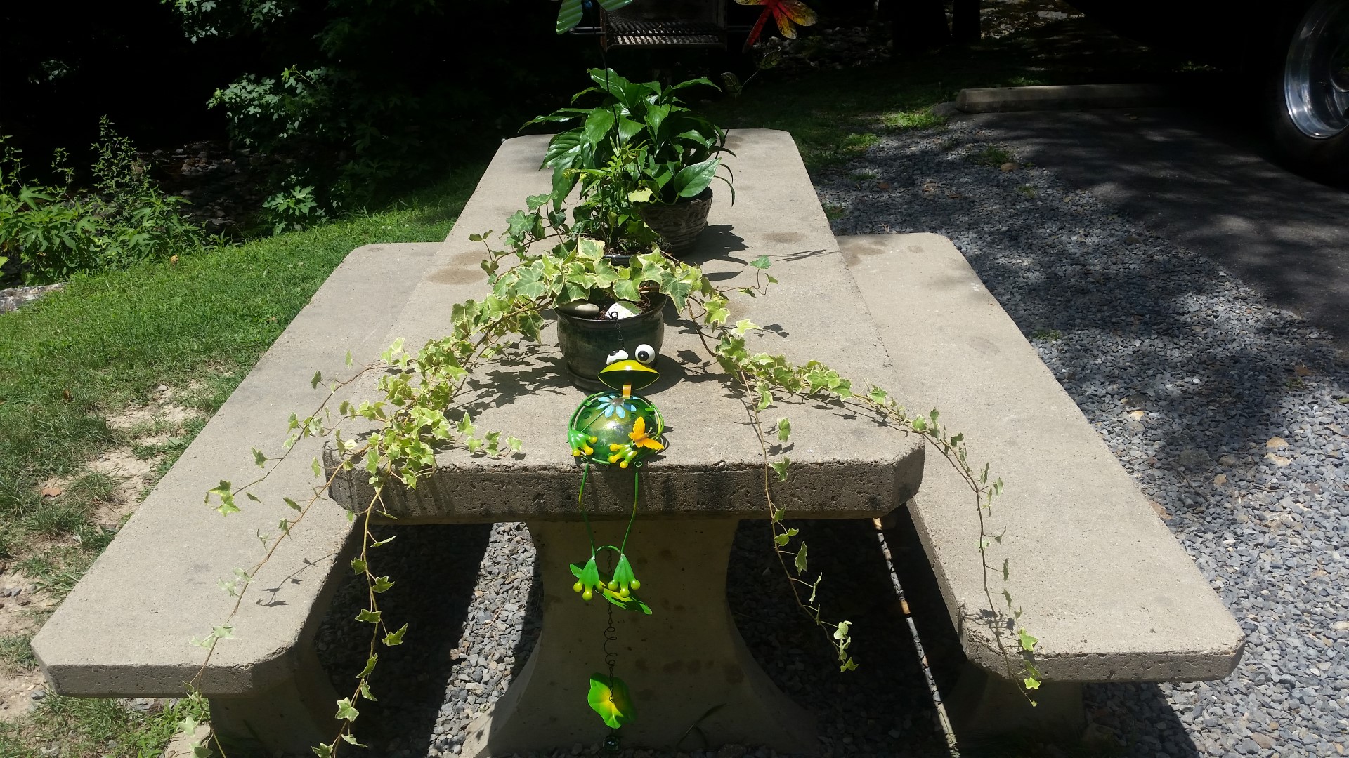 The BBQ pit is in great shape (they normally are not) and the picnic table is clean and is now decorated with the plants that travel with us!