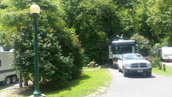 Tuesday, June 27, 2017 – Today we traveled 168 miles from Lake Village, Arkansas to Hot Springs, Arkansas. We are staying in Site 28 in Hot Springs National Park – Gulpha Gorge Campground. This is a first come first serve campground which I am not terribly fond of. You cannot make reservations and you never know if they have any openings until you get there.