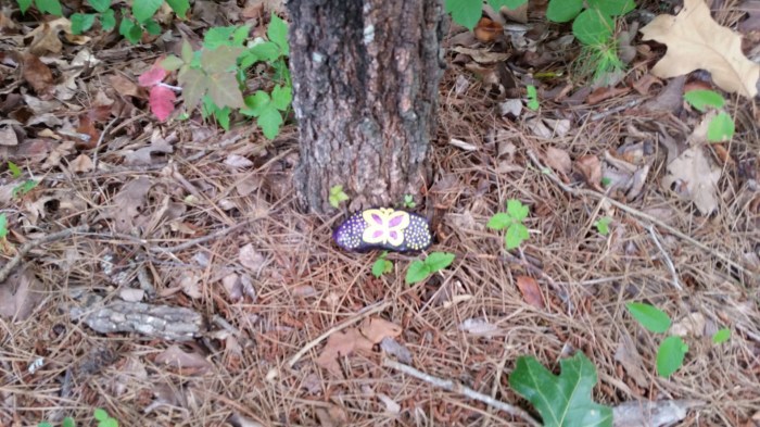 This was a beautiful place to walk around. The humidity was very high so we came away from it dripping! I kept thinking that this was not something I could have done even two weeks ago. I am so thankful that God got me through all the medical stuff and to this point! When we got back to the car I left one of the rocks I’ve been painting! I hope someone finds it and it helps brighten their day!