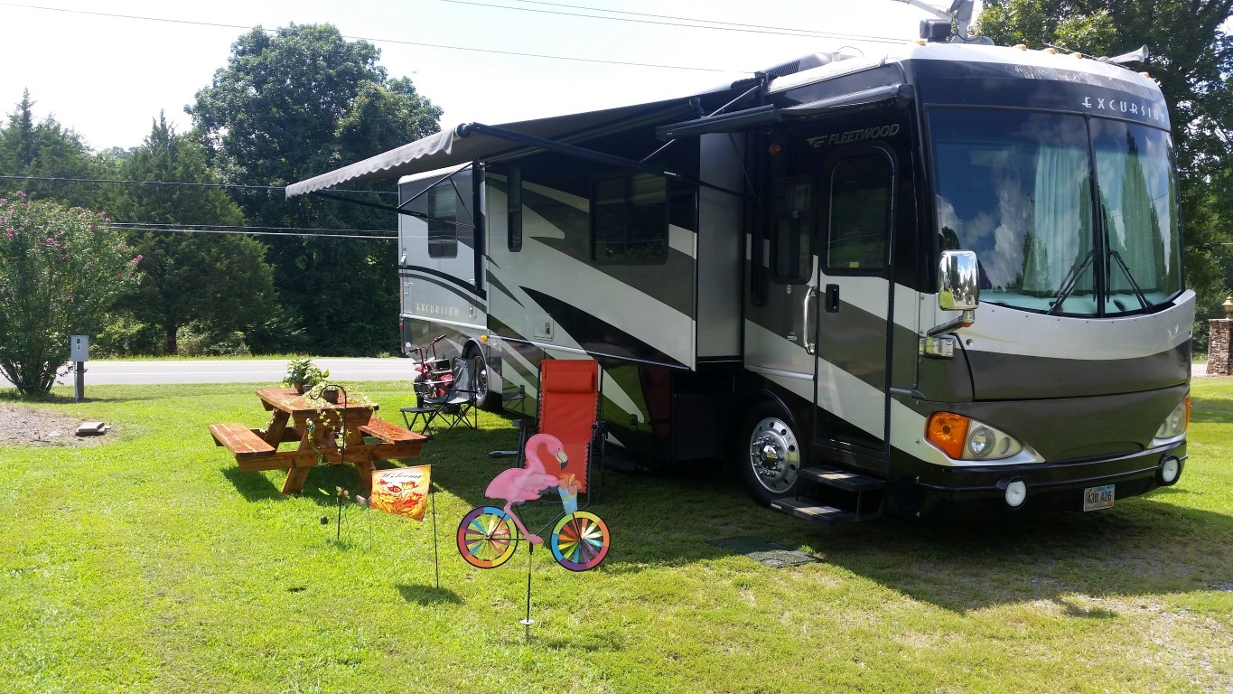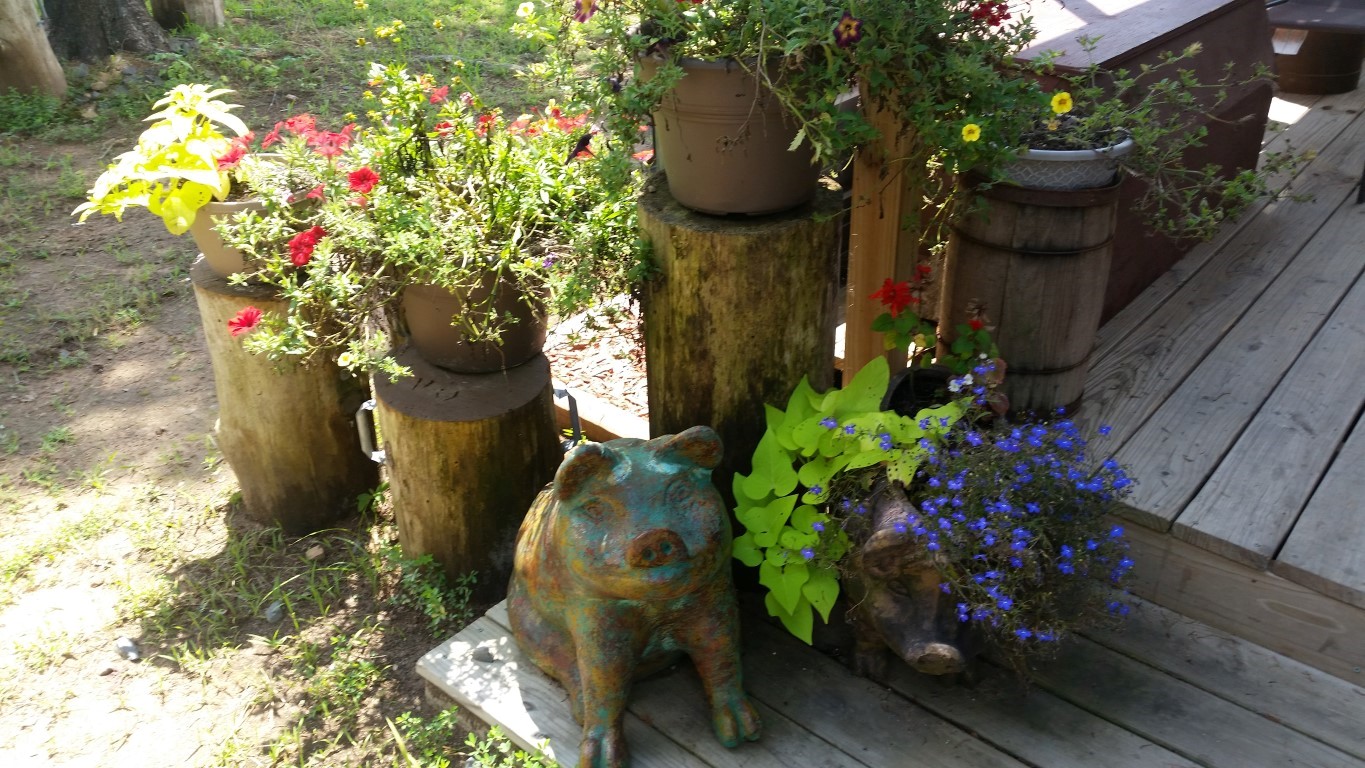 Here’s our little homestead from July 2nd to July 16th at Golden Pond RV Park! The plants are loving this beautiful Arkansas weather and our flamingo is just a pedaling away!