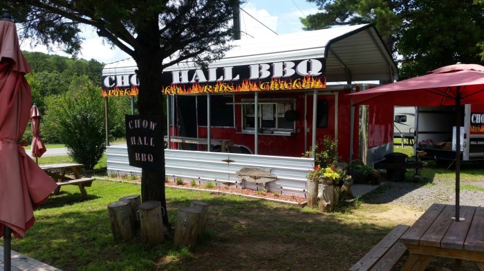 Tuesday, July 11, 2017 – Friday we went over to Chow Hall BBQ which is just 100 feet from our RV to try out their smoked food! This is from their facebook page: