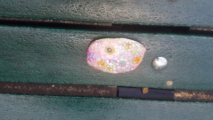 This one was found at Dixie Stampede. Susie said on Facebook: My granddaughter was SO excited to find her first rock at Dixie Stampede! I had just introduced her to rocking this week! Thank you!