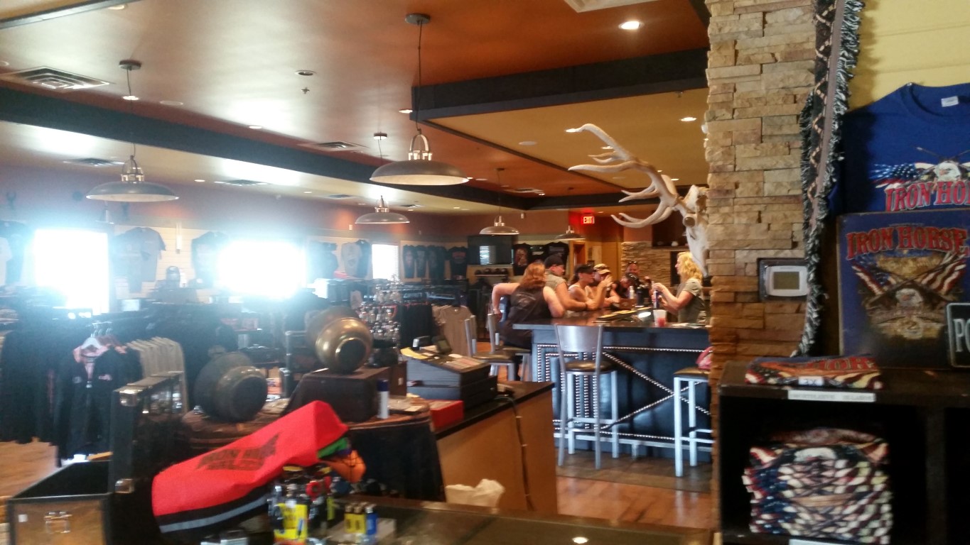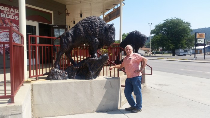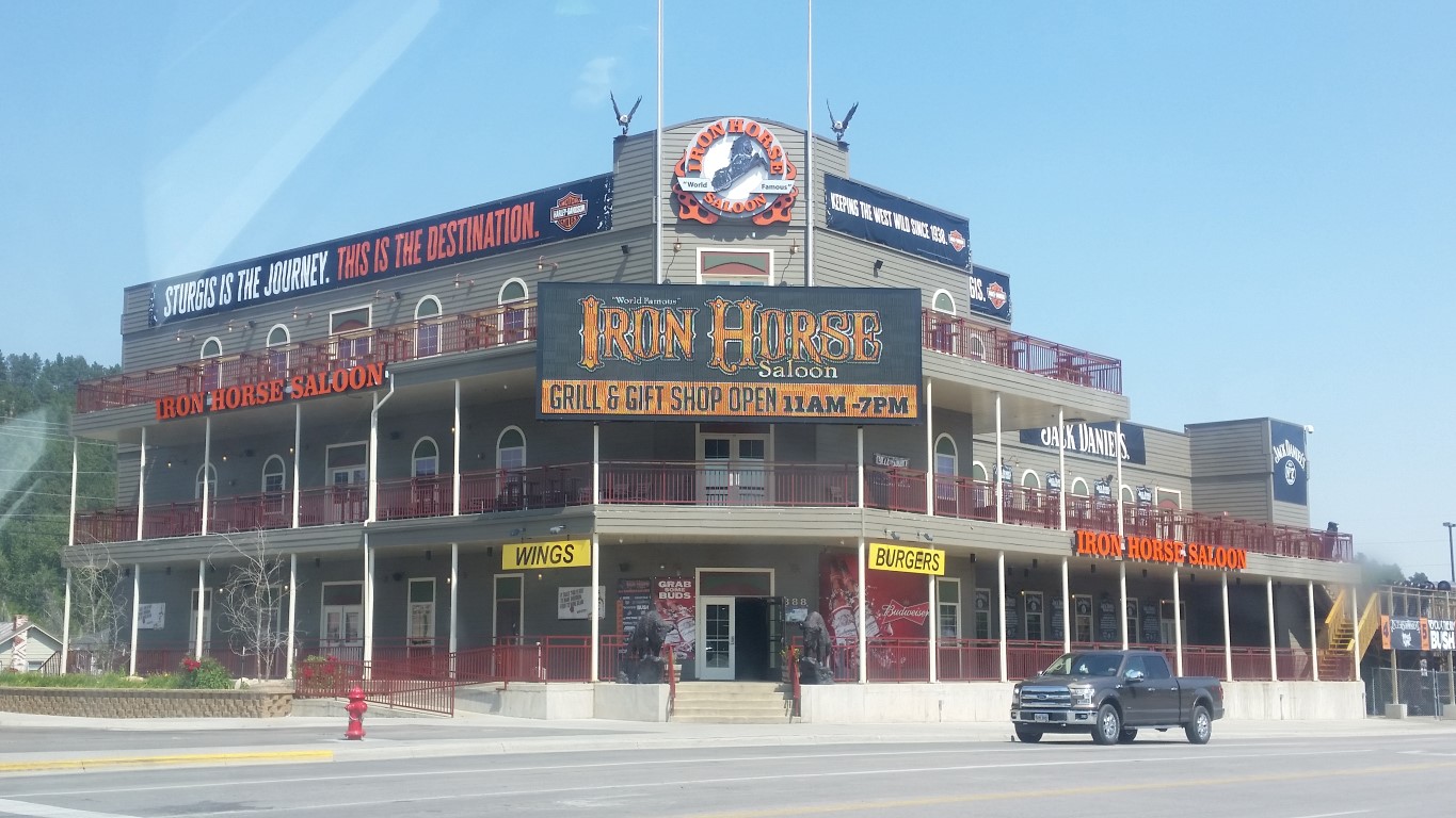 The biggest businesses were Saloons. We stopped at this one to see their gift shop and restaurant and found that only the bar was open. I took the photo of me pointing to the Budweiser sign kind of as a joke. We don’t know exactly what all the bikers do while they are in Sturgis but saloons and restaurants were all big and stood out.