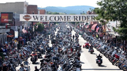 Motorcycle enthusiasts from around the world flock to this town during the Sturgis Motorcycle Rally. Motorcycle traffic to and around South Dakota typically increases as early as two weeks before the official start date of the event and continues for as late as two weeks after the conclusion.