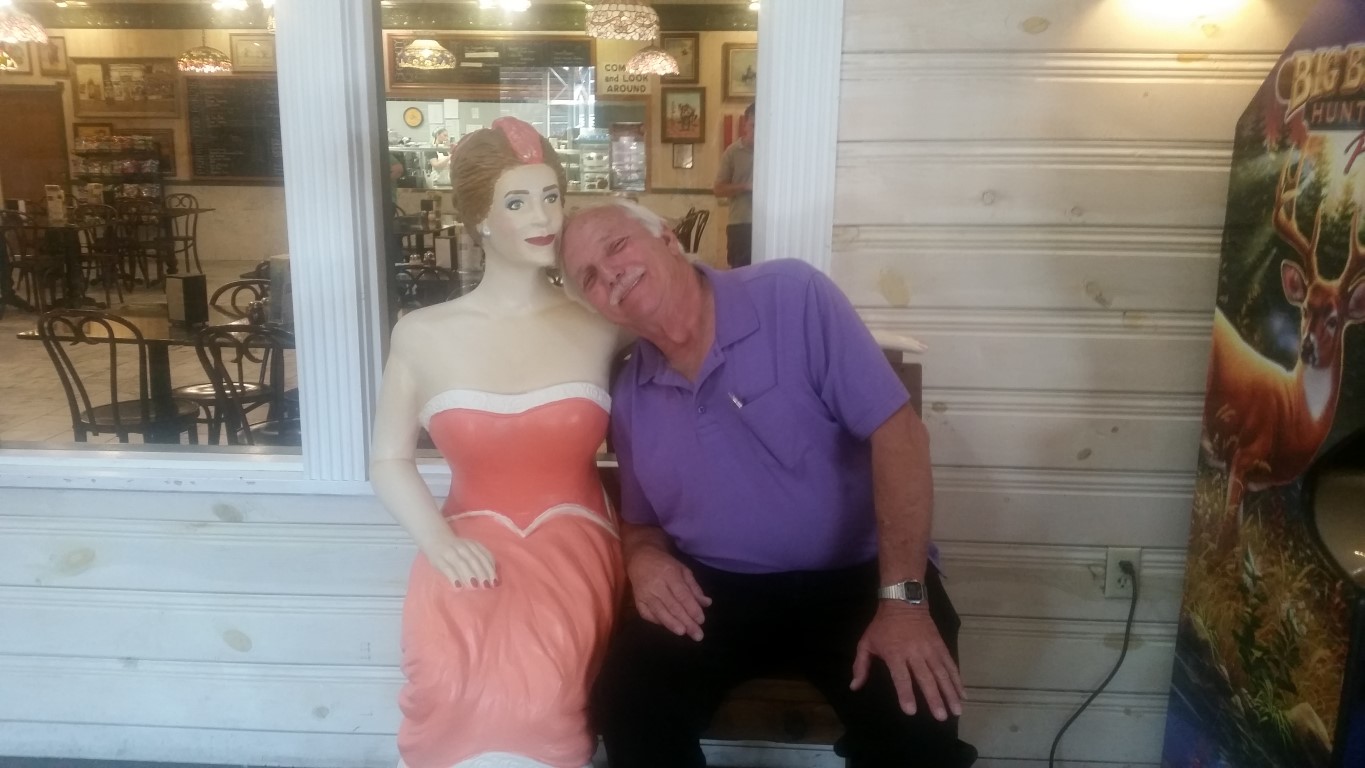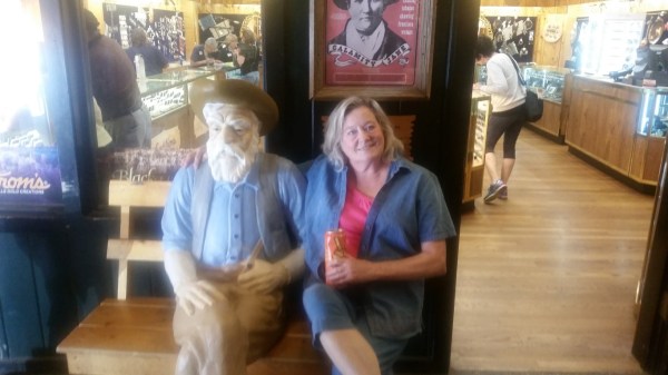 There is no way to have an order in which the photos should be arranged. At any one time we had no idea where we were in the maze of stores. We went through each of the stores in the front, then there is an outdoor play area and behind that another group of shops. Roy got a gold panning pan and I got some goodies for the grandchildren.