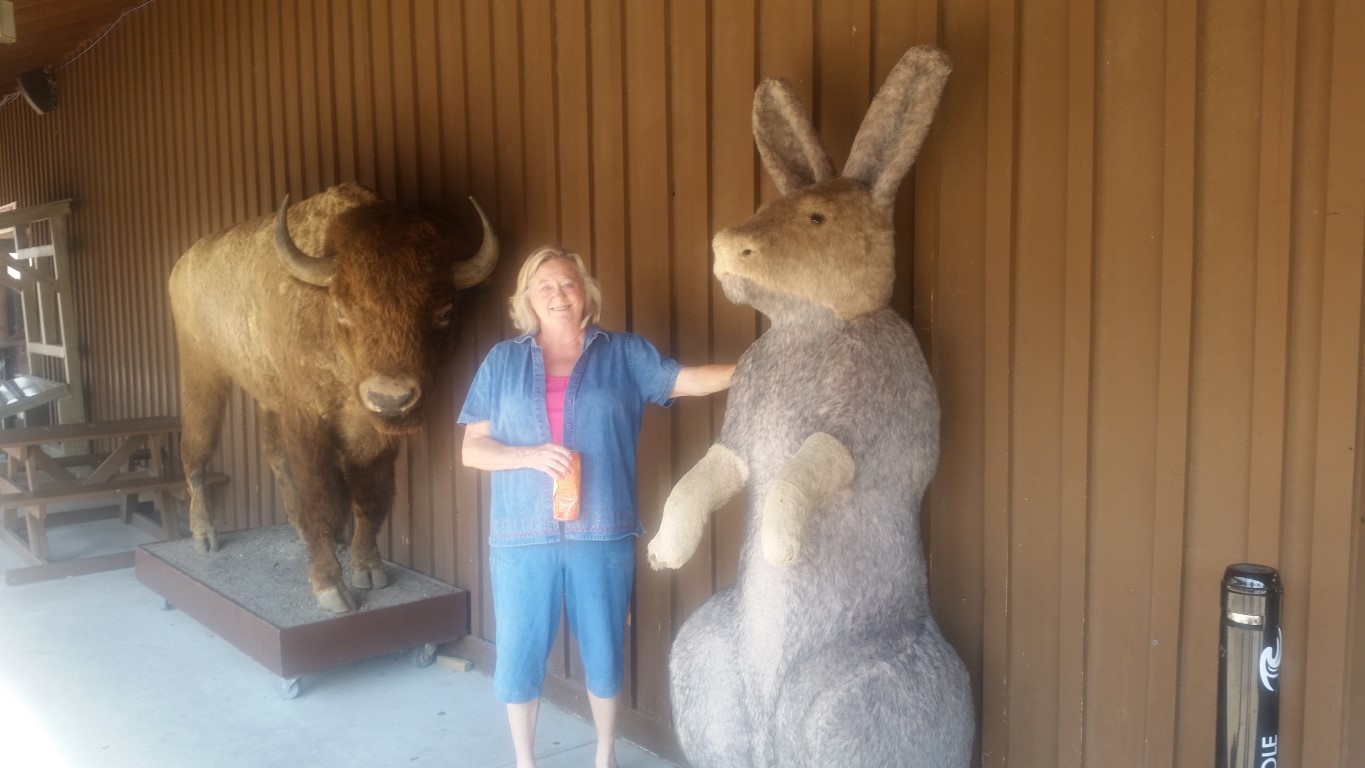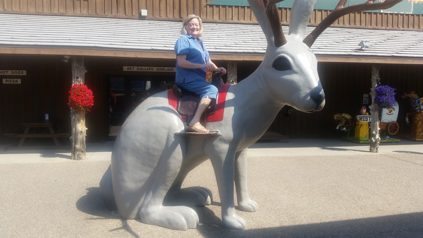 Brave old me climbed up on top of this “Jackalope” with people watching to see if I was going to make it up and down!