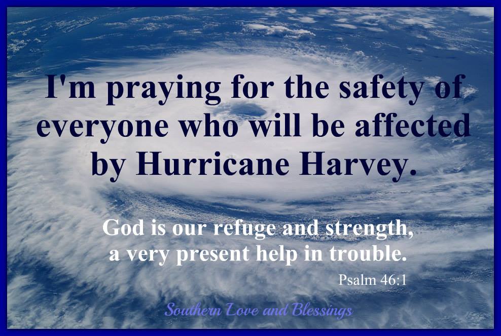 Hurricane Harvey is bearing down on Texas and Louisiana. We ask that you join us in praying for all those in the path of this unusual hurricane. We have friends in Texas and lots of friends and family in our home state of Louisiana.