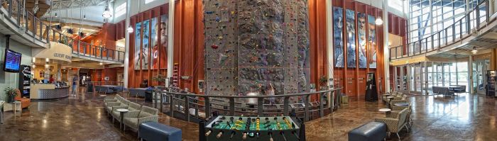 Pinedale Aquatic Center Lobby with the rock climbing wall