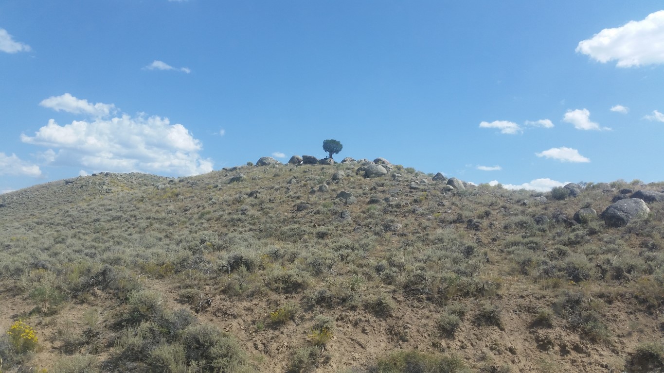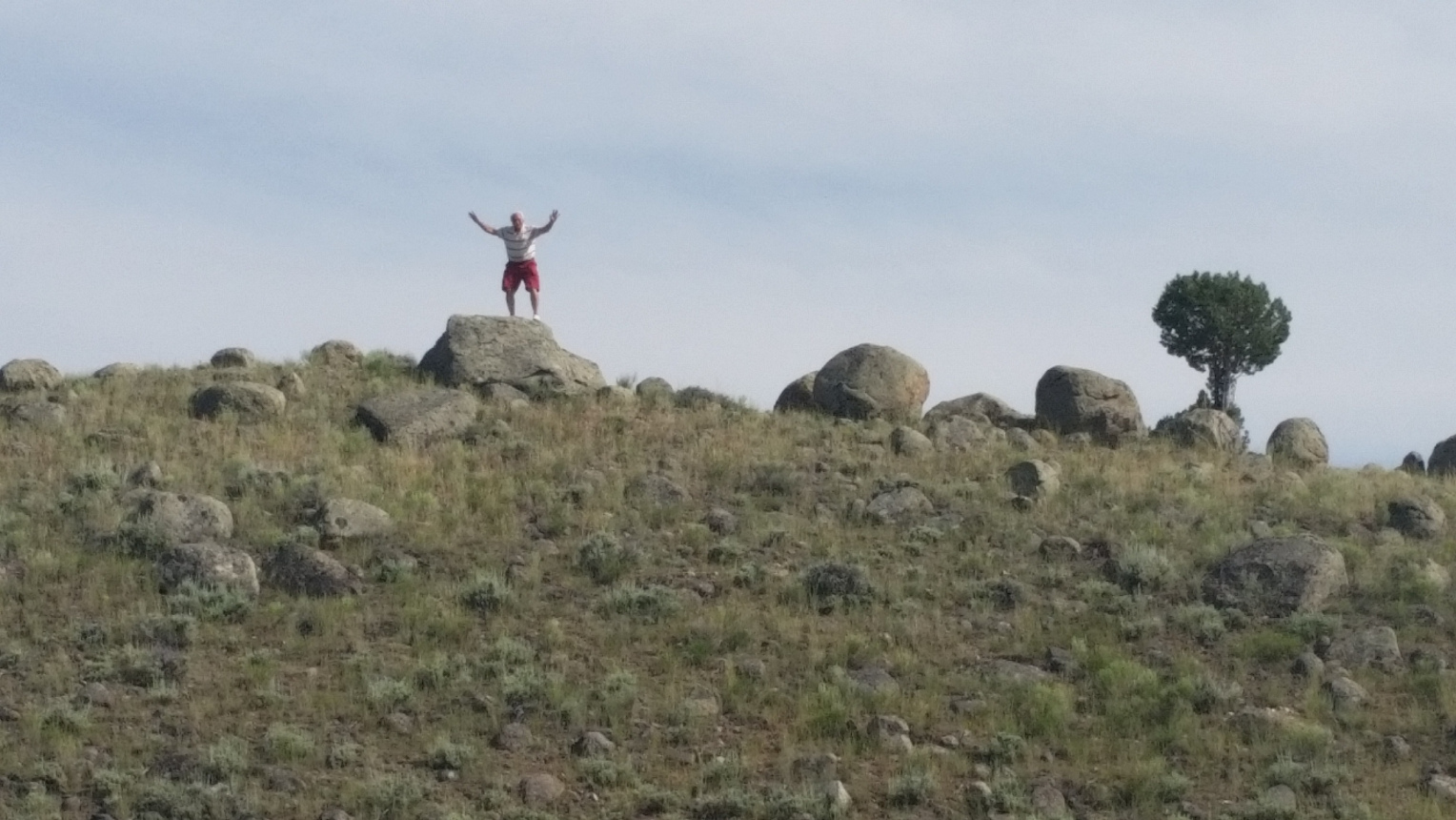 This time here in Wyoming, when we saw the tree I remembered that Roy climbed way up there and stood on one of the big rocks. I asked him this time if he wanted to do it and his answer was a very big NO! So the photo that is above was this year and the photo below was from 2015.