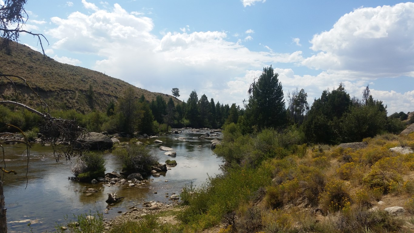 The weather here in Wyoming is so wonderful we are loving it! The picture below is Dora at Wind River View Campground in Boulder, Wyoming.