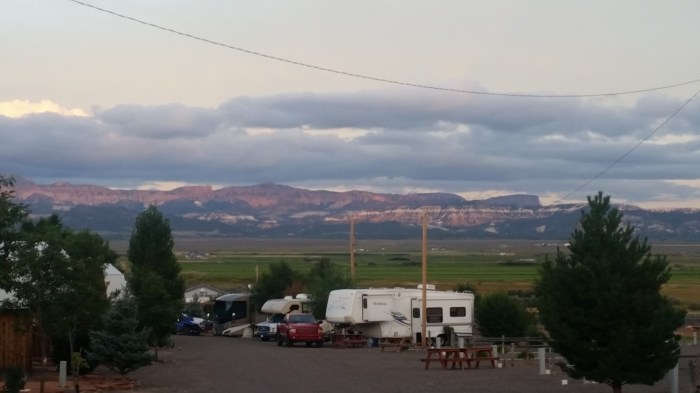 We stayed at what first seemed to be an odd RV Park but it turned out to be very nice. The view is indeed paradise like, the price was one of the cheapest we’ve ever paid and it’s one I’d certainly come back to again. Its on Highway 89 and is only 15 miles from Bryce Canyon which we visited while we were there.
