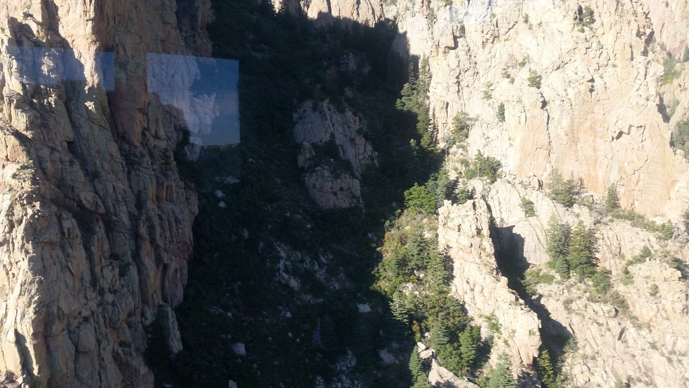 Going back down the mountain. These photos were taken from the opposite side of the tram and from the rear.