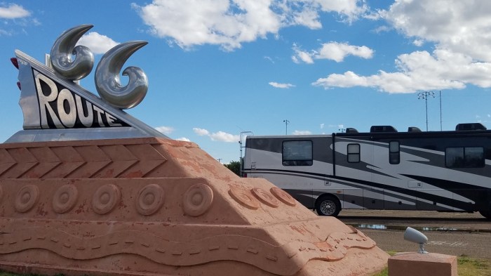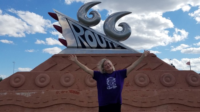 Tuesday, September 26, 17 – In Tucumcari we saw the Teepee Curios, Blue Swallow Motel and the Route 66 Monument at the Museum. If you’re counting that’s these three plus two in Santa Rosa that we saw all in one day. And we watched our home church’s worship service before all this!