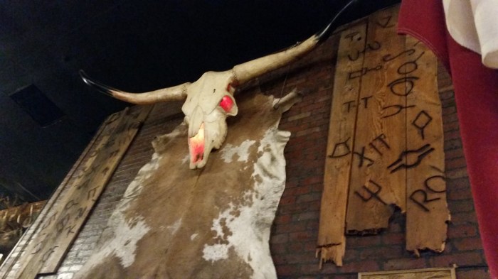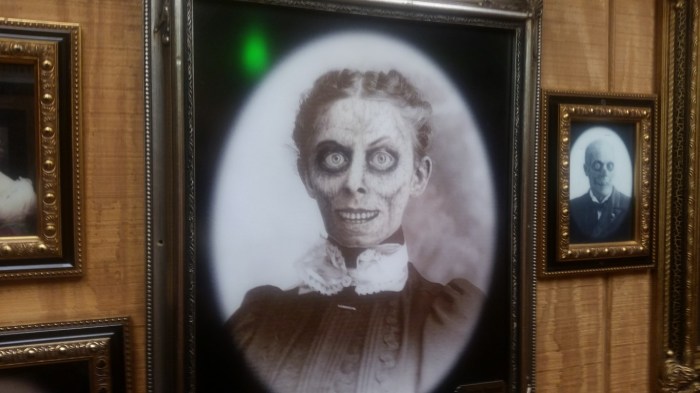 After dinner we walked around to see the rest of the place. A hallway near the back had several photos on the wall. When you stood in front of one it looked like a normal person. When you moved a few inches to the side the person turned into a skeleton!