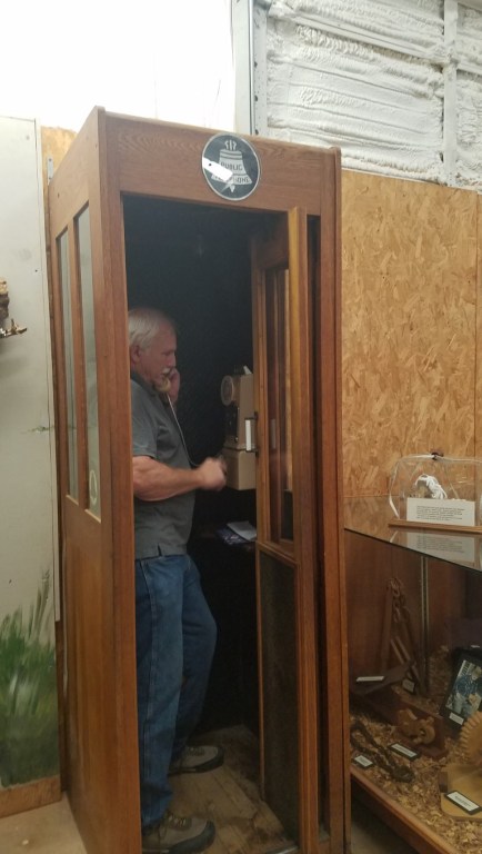 I caught Roy calling one of his girlfriends on this old-time rotary dial public phone booth!