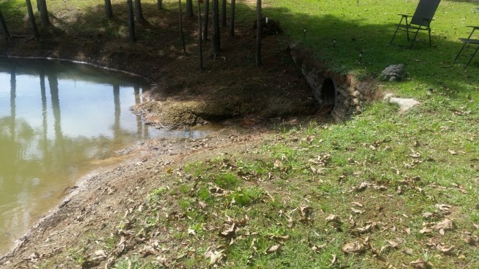 The water in our pond is down pretty much right now. When we left the water came up to the top of the culvert and now the entry to the culvert is totally dry.