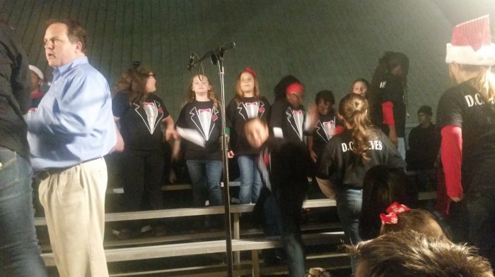 Our granddaughter Madisyn sang in the 3rd-grade chorus at Ponchatoula’s Christmas Lighting. At various places along Ponchatoula’s main street groups from schools and churches have designated times to sing. We couldn’t stop smiling listening to all the young voices sing Christmas songs. The whole town is lit up with Christmas lights and decorations and several locations serve cookies and hot chocolate. Madisyn’s group sang at the Methodist Church. Madisyn is very tall and is on the back row. You can see her better in the first picture. What you see in the second photo is half of the choir. There was no room for me to move around and get the whole choir.
