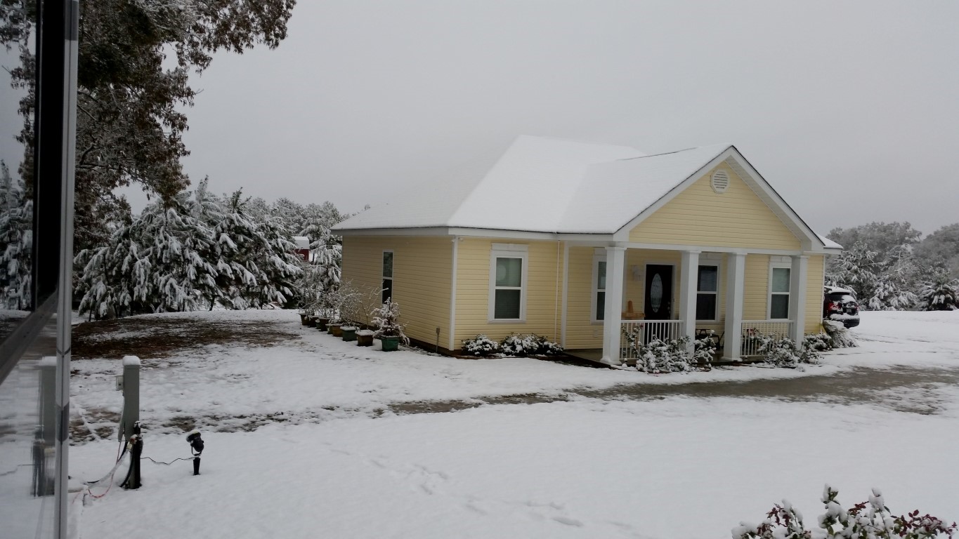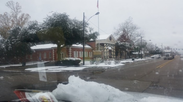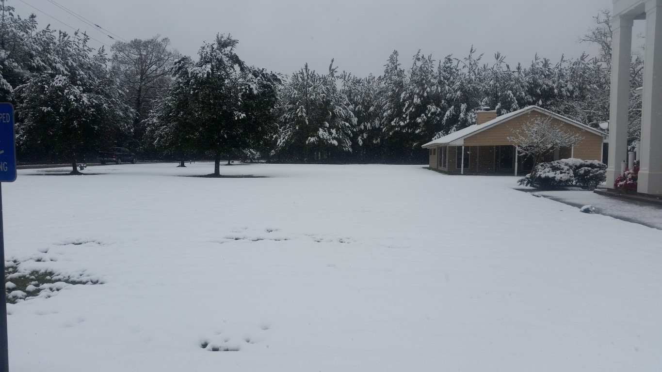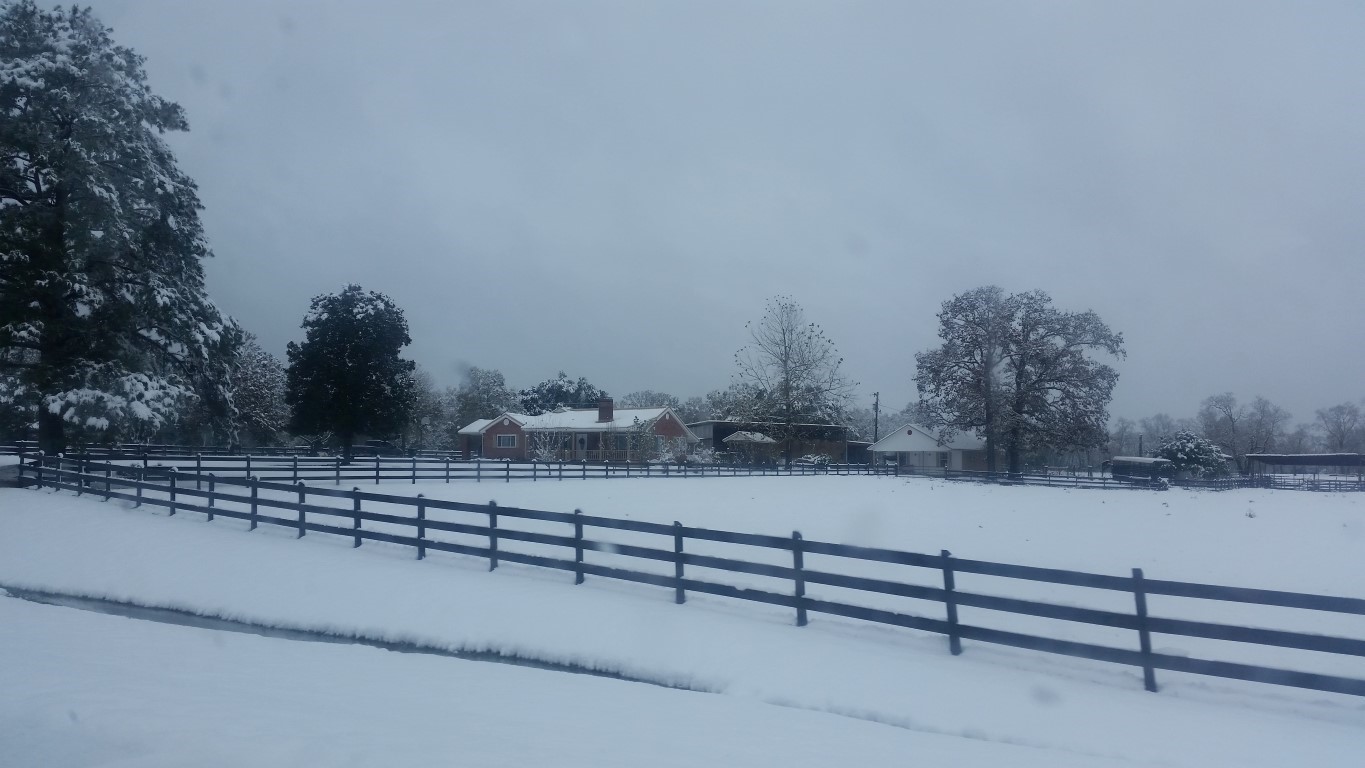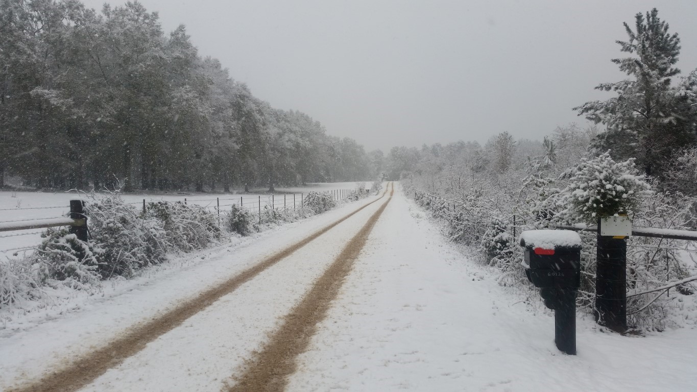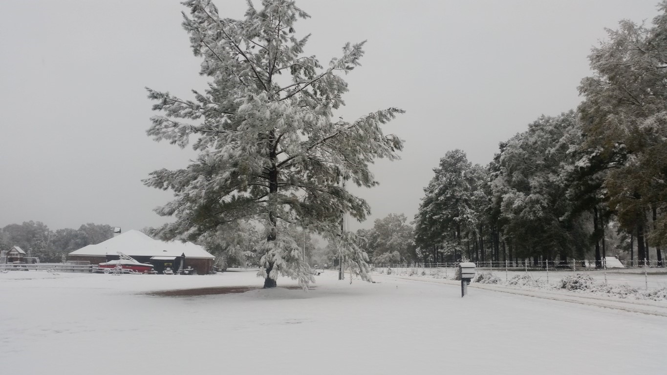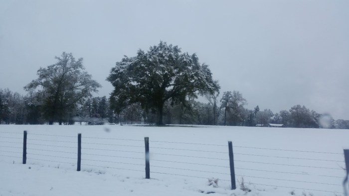 The photos are of our home and pond in Amite, the roads between our home and Interstate 55, then down Interstate 55 and 12 into Hammond and some sights we saw there including our church and Camping World, our son Chip’s home in Ponchatoula and a few pictures this morning now that the snow is just beginning to melt. The temperatures over night were only in the 20s so we got to wake up again to whiteness everywhere!