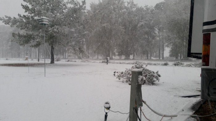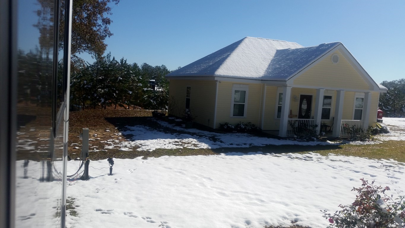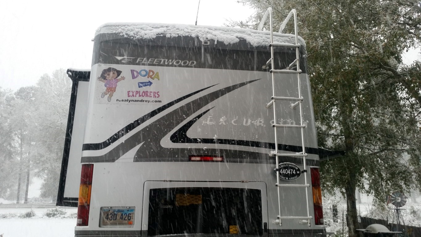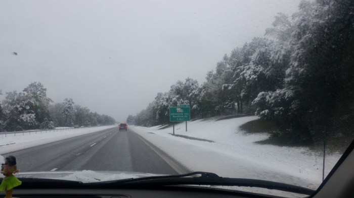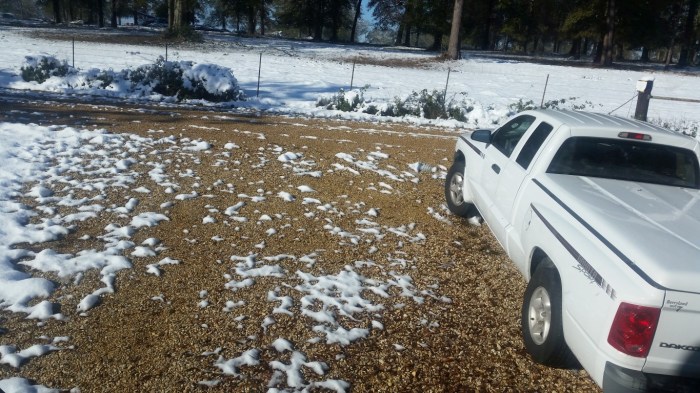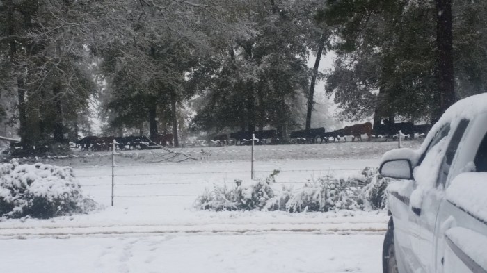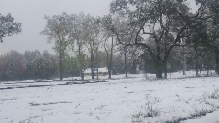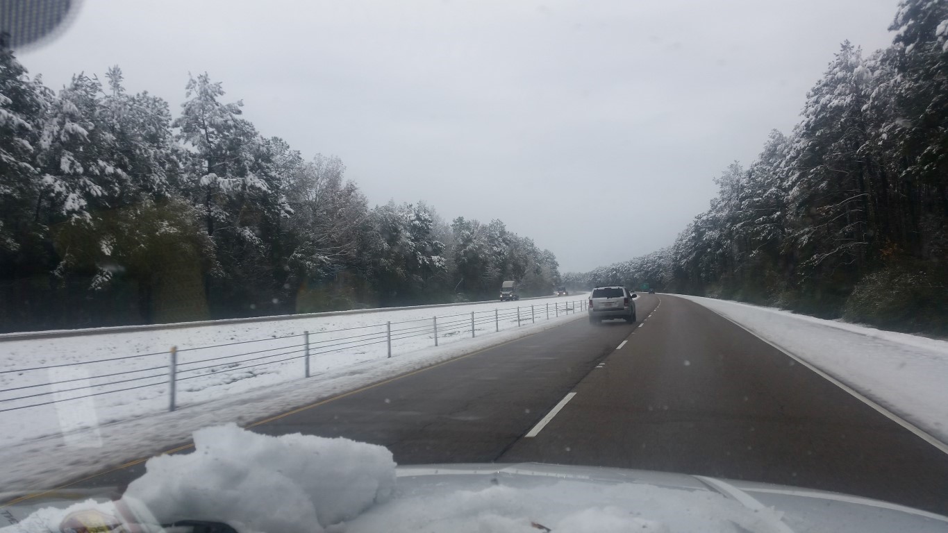 The photos are of our home and pond in Amite, the roads between our home and Interstate 55, then down Interstate 55 and 12 into Hammond and some sights we saw there including our church and Camping World, our son Chip’s home in Ponchatoula and a few pictures this morning now that the snow is just beginning to melt. The temperatures over night were only in the 20s so we got to wake up again to whiteness everywhere!