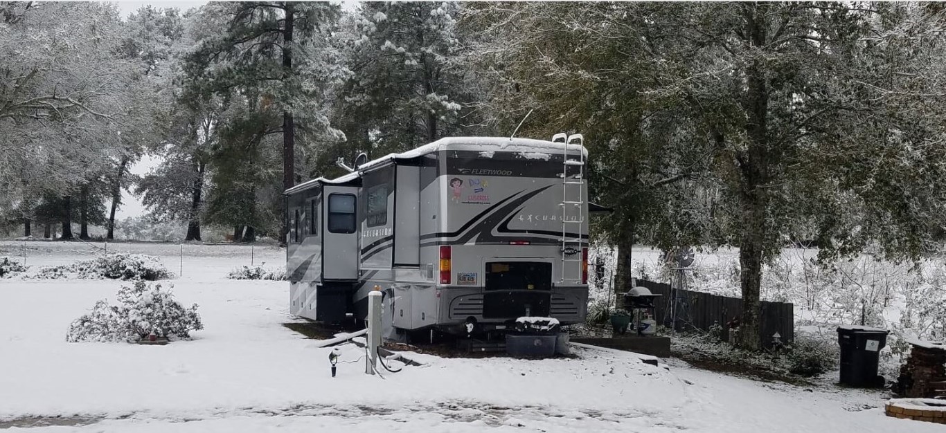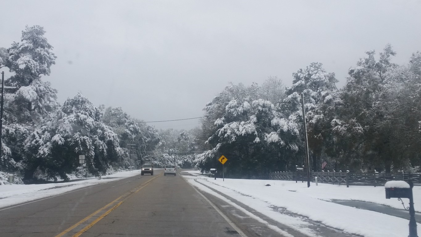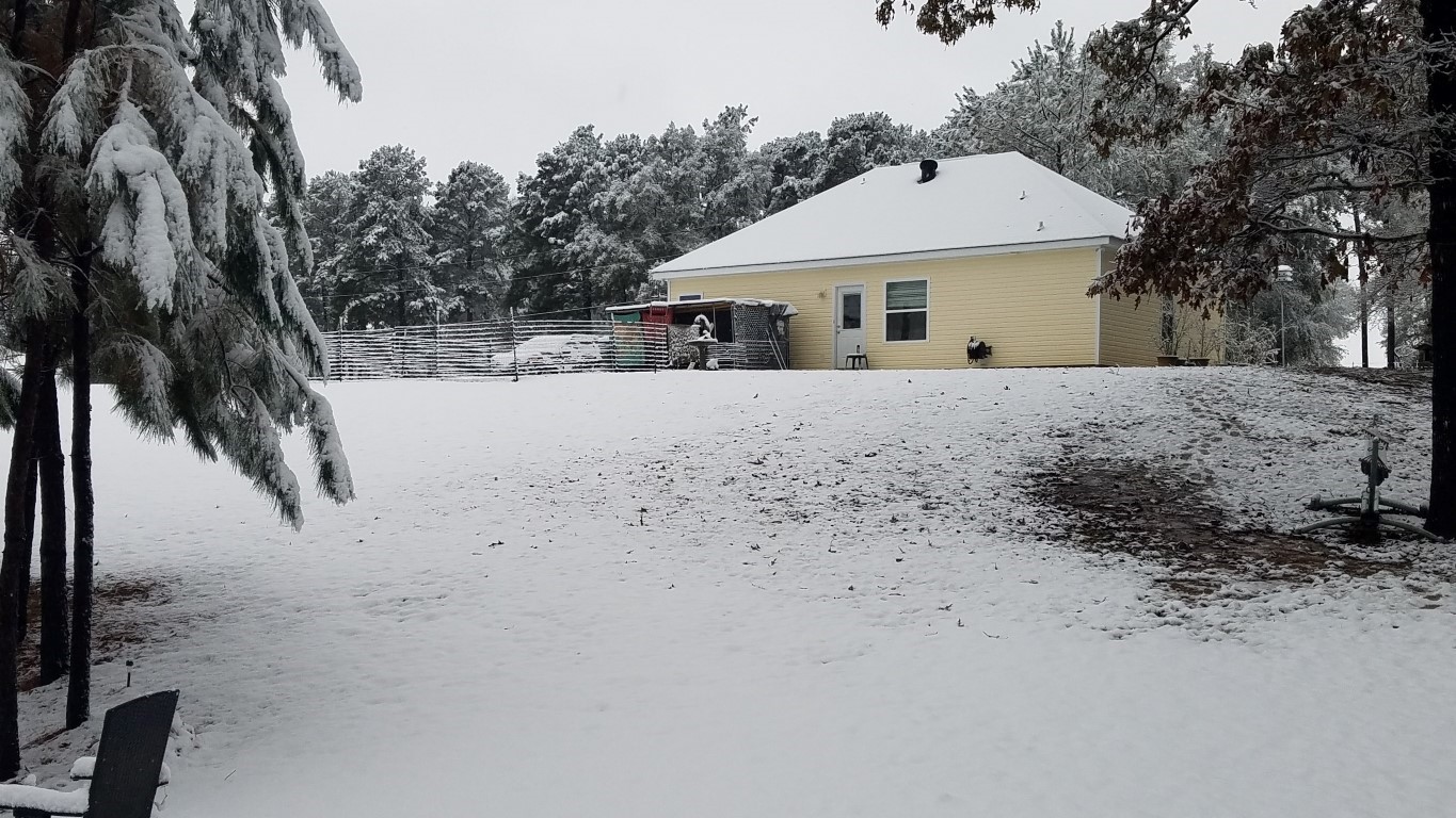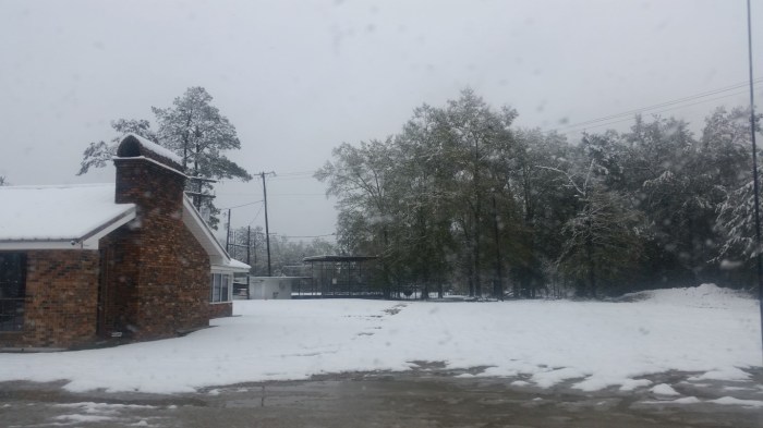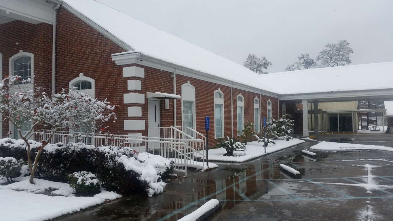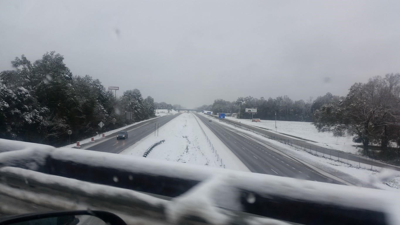 The photos are of our home and pond in Amite, the roads between our home and Interstate 55, then down Interstate 55 and 12 into Hammond and some sights we saw there including our church and Camping World, our son Chip’s home in Ponchatoula and a few pictures this morning now that the snow is just beginning to melt. The temperatures over night were only in the 20s so we got to wake up again to whiteness everywhere!