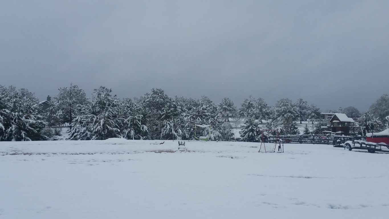 Saturday, December 9, 2017 – The weather report for Friday, December 8, 2017 was that we MAY see a few snow flakes over night. When we woke up to snow blanketing everything we were overjoyed. It continued all throughout the day.