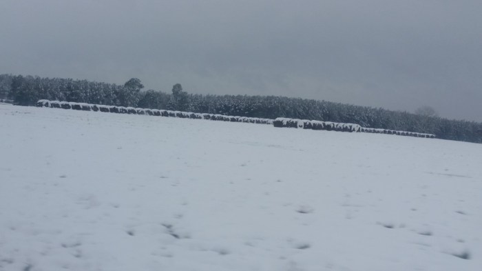 It is now Saturday and the temperatures just rose to the 40s so slowly the snow is melting and falling off the trees. The lawns, pastures and anywhere else that hasn’t been walked on are still white and so beautiful.