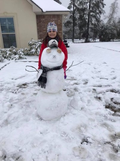Our granddaughter Kallie in Ponchatoula enjoying the snow!