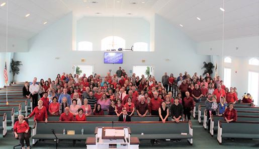 We celebrated the love of God and His love through our lives on Red Sunday at our church, Trinity Baptist Church. Roy and I are on the fifth row from the front.