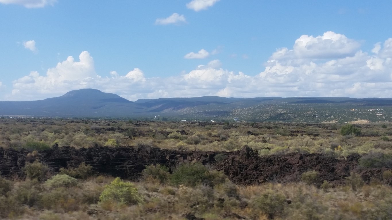We saw many lava beds along the interstate. That is what the black hole is in this photo.