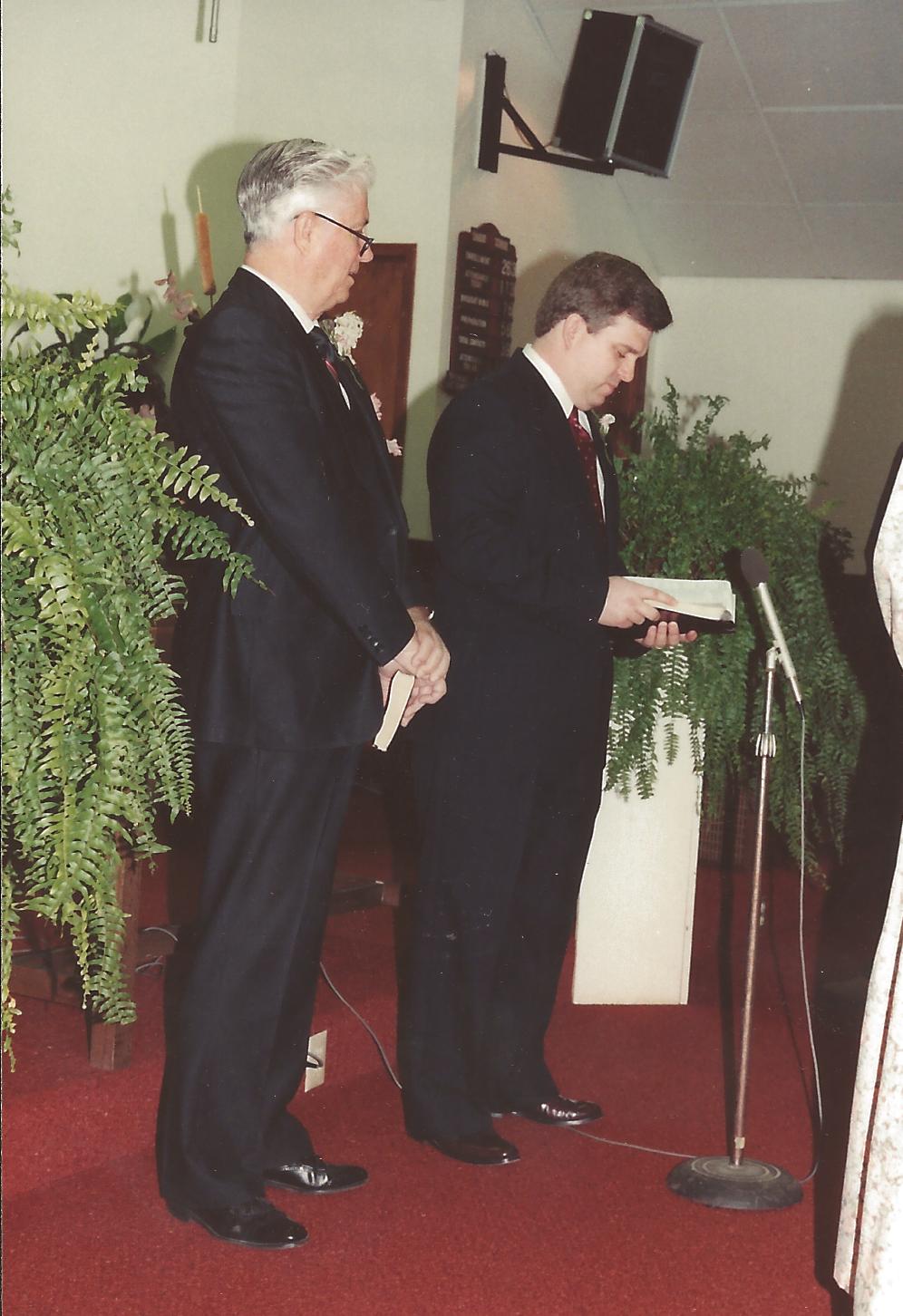 The photo below was my mama and Mr. Vivian Traylor’s wedding ceremony. These two pastors were the only pastors I ever had, until last year. Mama wanted both of them to officiate at her wedding and they did! Rev. J. Richard Randels, our pastor at Lakeview Baptist Church in New Orleans, is the gentleman with greyer hair. Dr. Randy Davis is the young guy who was our pastor at Trinity Baptist Church here in Pumpkin Center (Hammond) Louisiana. Rev. Randels officiated at Roy and my wedding back in 1972!