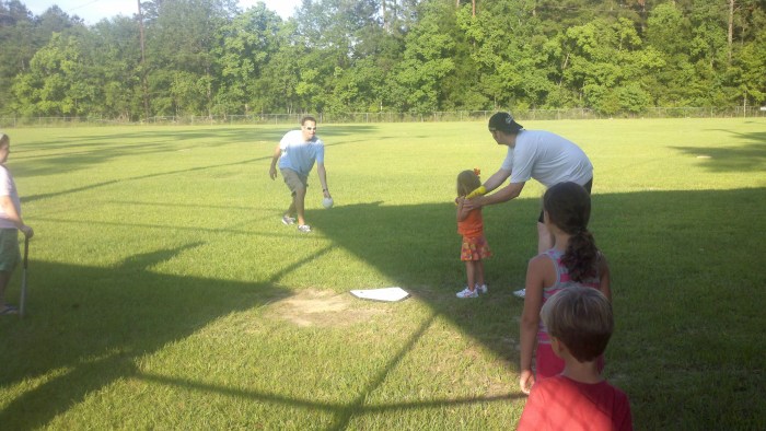 In May of 2012 we had our Annual Family Picnic at Trinity. The picnic included a softball game with our young children and some of our young adults. It was so much fun even for the spectators. Our granddaughter Madisyn is in most of these photos but they also show lots of Trinity’s finest softball players like Jeri Bankston, Cat Davis, Noel Louviere, Byron Bankston, Chip Chauvin, Philip Bankston and their precious children. Paw Paw Roy and Grannie Rosalyn were big supporters and fans along with other family members and friends at the picnic.