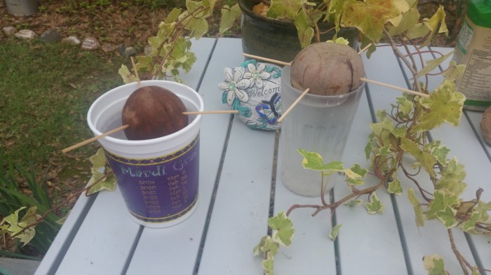 We’ve added to our vegetable/fruit gardening effort attempting to grow avocado trees from the pit. Started one last week and one today. I’m trying to figure out how to grow mangos from the seed. I’ve planted about a dozen jumbo Virginia raw peanuts in a glass bowl, hoping to make my own supply of peanuts to cook this year.