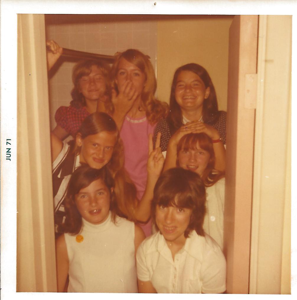 3. Rosalyn Blum, Elizabeth “Gi” Lehmann, Suzanne Ellis, Kim Dixon, Brenda Dixon, Liz Kissgen Butler and April Phillips Scarlach! Why we all got in the bathroom to take a photo, I do not know!