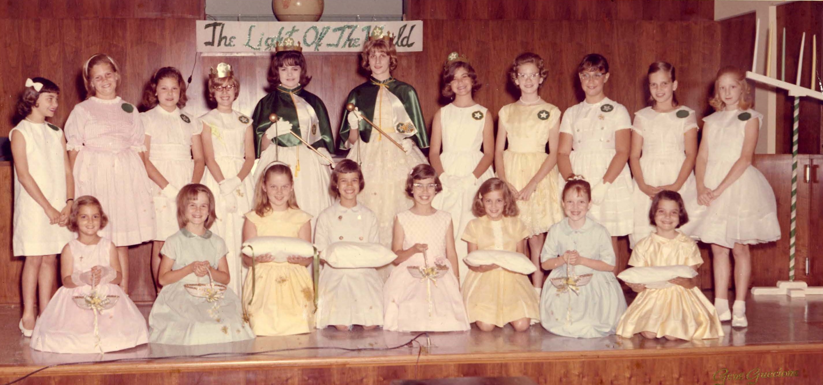 For those who do not know why there are a bunch of girls dressed up, some with crowns, some with capes, some with scepters in the second photo below. We were part of Girls Auxiliary which is a Southern Baptist organization that helps girls grow in their spiritual development as they learn the biblical basis of missions and discover their part in God’s plan. These two photos are of one of our “Coronations” one year. Girls participated in “forward steps” and received awards at a coronation service for each level completed. Over time, the steps included: Maiden, Lady-in-Waiting, Princess, Queen, Queen in Service, Queen with a Scepter, Queen Regent and Queen Regent in Service. Girls’ Auxiliary later became Girls in Action in 1970.