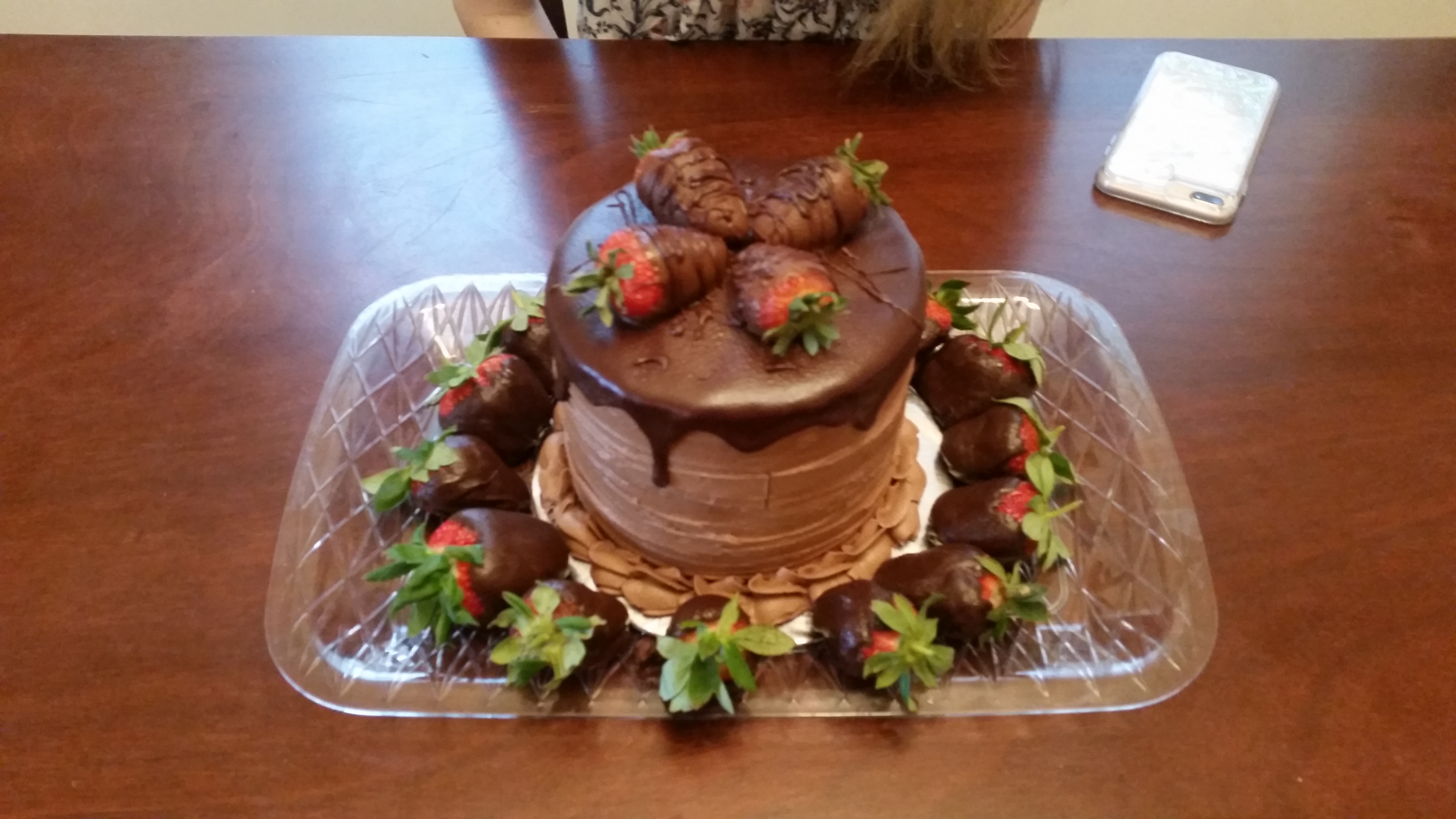 Kallie’s amazing cake was made by “A Tammy Cake” which Tammy describes as white almond cake filled with berry compote and fresh strawberries, chocolate buttercream icing, ganache and chocolate covered strawberries on top. Tammy can be contacted on Facebook at https://www.facebook.com/atammycake/