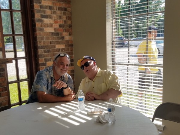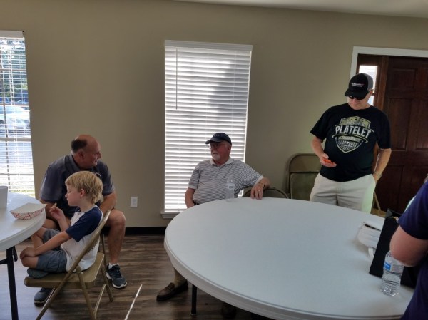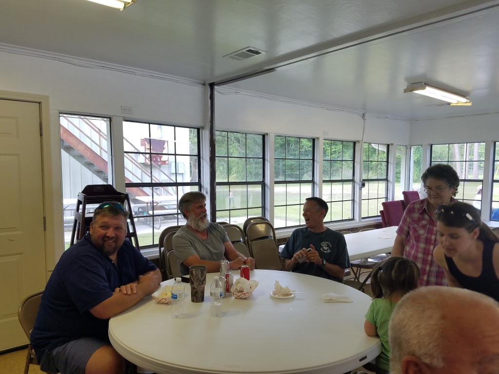 After the ultimate frisbee game everyone gathered inside in the air condition for more eating and rest! Barry, Bob Anderson, Haze and Spot.
