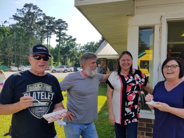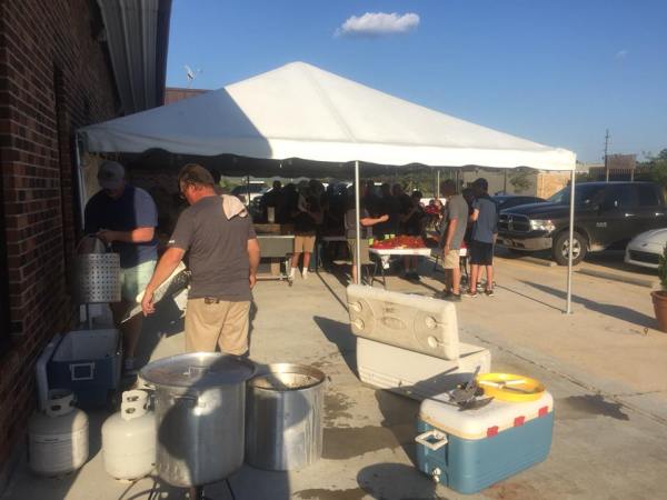 Our son Chip’s church, The Harbor in Hammond, had a men’s crawfish boil and wiffle ball game at the same time we were having our picnic. I grabbed a couple of his photos (with approval) to share with ya’ll. Us Christians are sure fed well!!!