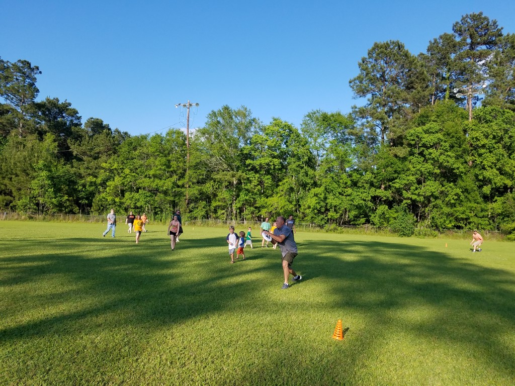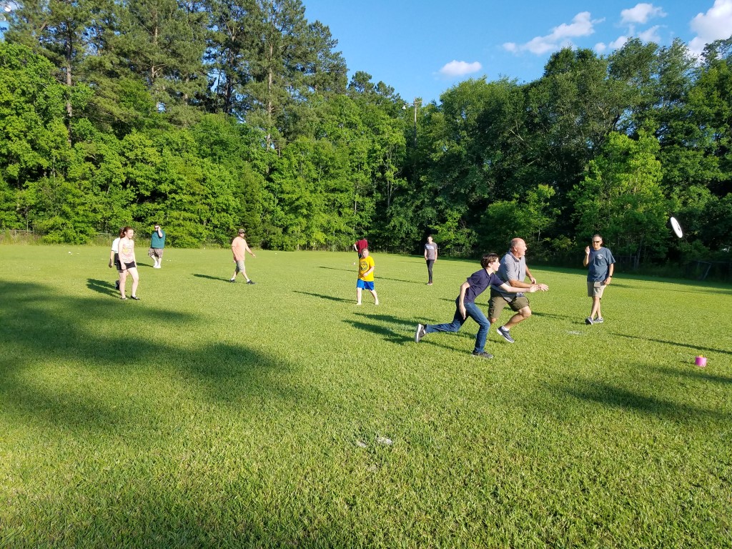 The men and children played Ultimate Frisbee. A couple of our older men played and kept up with those younguns step for step. I was impressed! My very wise husband sat out of the game! We need all of his parts working! The pictures do not show even a little of the running around these folks did constantly for over an hour. I am imagining that there will be lots of folks calling in sick on Monday from their over strenuous Sunday activity!
