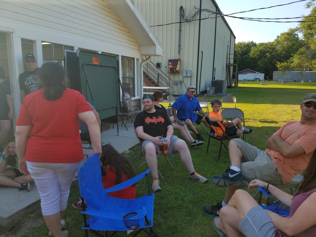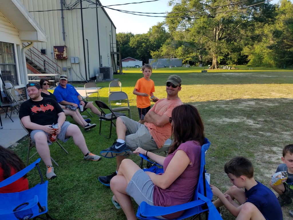 And some gathered outside in the shade while they recovered! Our youth Minister Dustin Pierce in the black shirt and shorts in the center of this pic.
