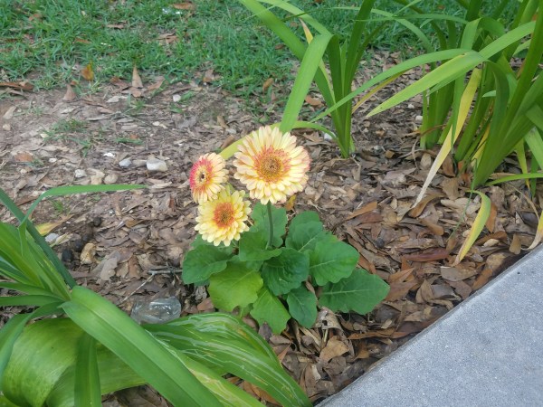 I’m sharing this photo so my sister Harriett can see how well the gerber daisy plant she gave me is doing! it is so pretty, thanks sis!! The Ivy you gave me for inside is doing really well and seems happy here! The begonias are taking longer getting settled but they are starting to grow!
