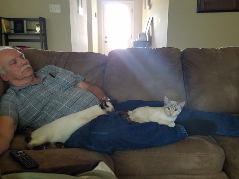 They have two adorable kitties, Milo and Lilly who came to visit us while we were resting. Actually I should say they visited Roy. I let them out of their room and loved on them but they went to lay by Roy! He didn’t seem to mind that! Milo has the dark ears and Lilly has the light ears. They are precious!