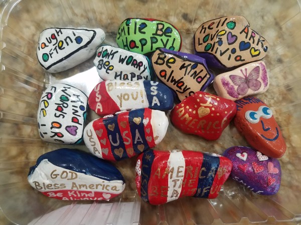 A sweet young friend of ours took these rocks below on a vacation and has already hidden a couple along their travels!