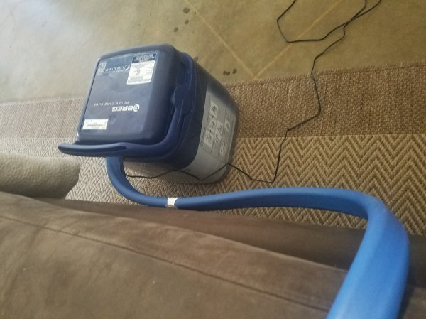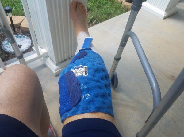 This ice chest thing (Polar Care Cube) is attached to a tube that runs within a blue thing that is wrapped around my knee. It keeps my knee cooled and the swelling down. I don’t have to wear it all the time but I’ve been wearing it alot. First pic is the company picture!