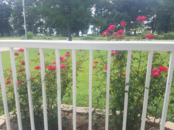 While we were enjoying being outside for a little while I noticed that our rose bushes are just beautiful and I had to share!