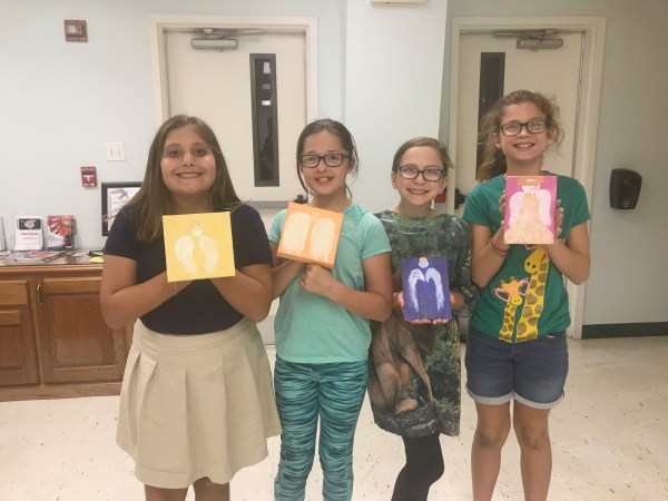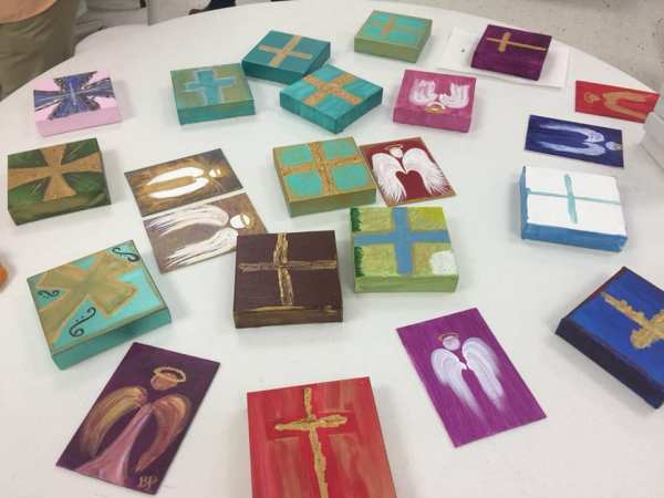 Here’s the young ladies that joined us. Madisyn (my granddaughter), Mia, Gracyn and Ryleigh painted crosses and angels right along side us!