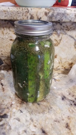 The cucumbers that I pickled (using a refrigerator method) are ready and we are really enjoying them. They taste just like kosher dills!