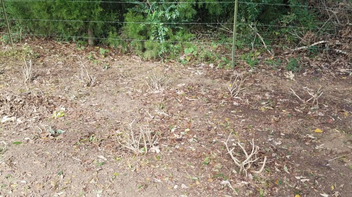 Before pruning – there are five in the back and three in the front. Four had no leaves and four still had some leaves. This picture was taken last week so they were minus a lot more leaves when I pruned them.