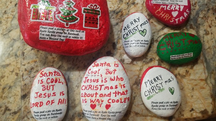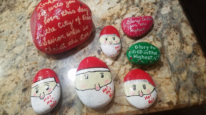 These were some of my Christmas rocks with Santa on the front and on the back a message about Jesus Christ.