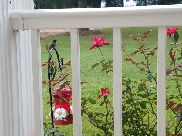 One of our favorite things to do since we moved into the house was watching the hummingbirds play while we drank our morning coffee on the front porch.